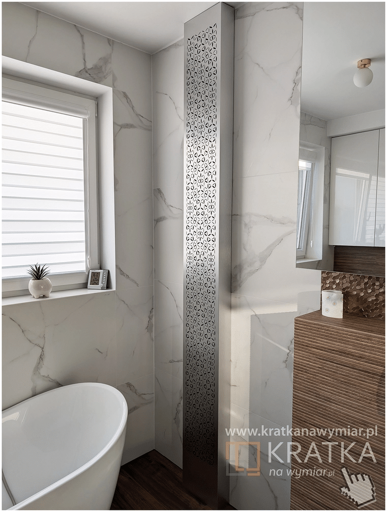 Zabudowa rur CO z GK, MDF-u lub drewna wiąże się z prawie pełną utratą ciepła ze względu na izolacyjność ww materiałów. Jedynym rozwiązaniem gwarantującym bezstratne odzyskanie ciepła jest ażurowa zabudowa z aluminiowej płyty kompozytowej. Sama płyta jest doskonałym przewodnikiem, dodatkowo może mieć jeden ze 120 ażurów o róznej przepustowości pozwalających na konwekcyjne rozchodzenie się ciepła. Płyty ACP posiadamy w 16 kolorach. Dodatkowo dostępnu jest też materiał o zwiększonych parametrach konstrukcyjnych